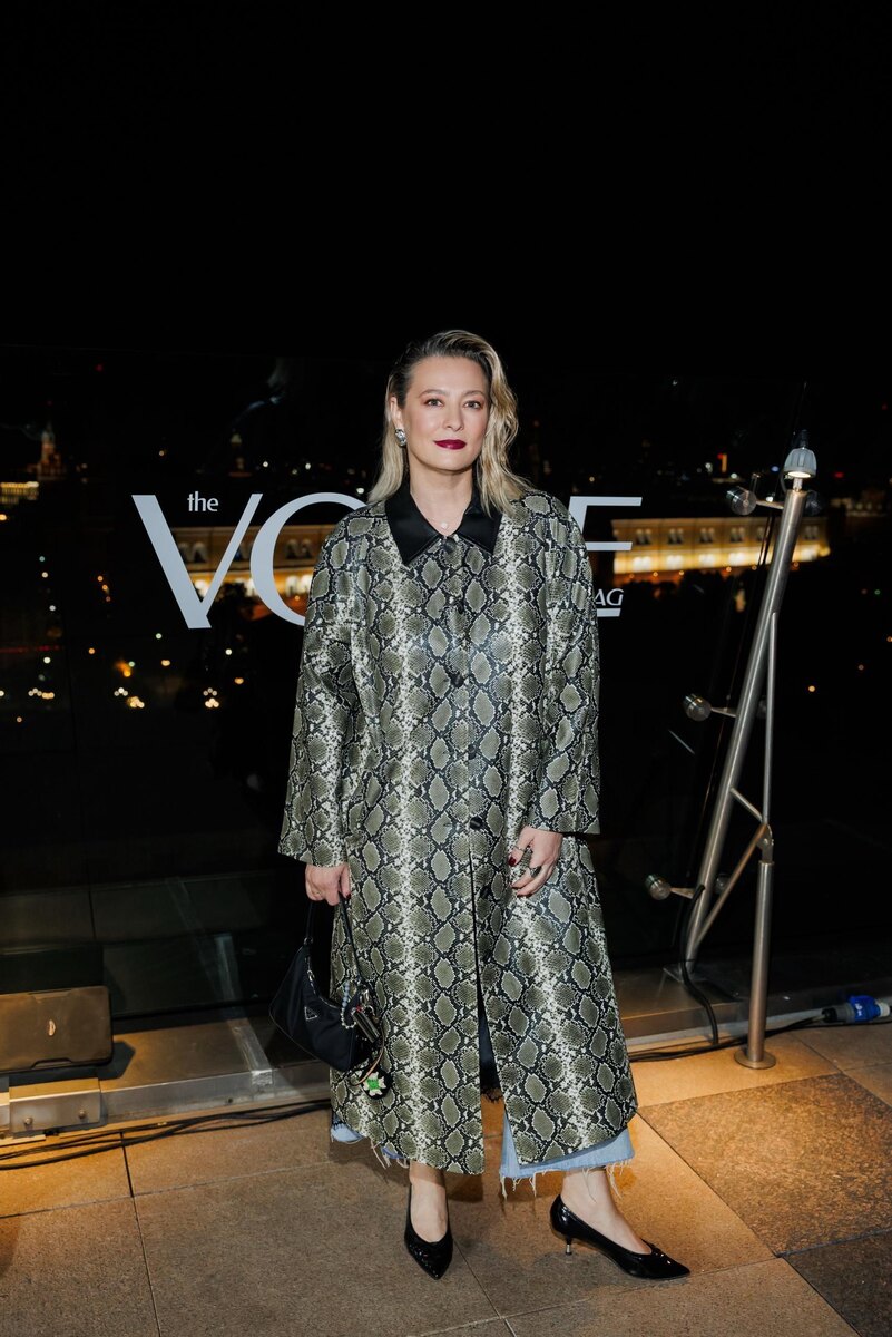 С видом на вечернюю Москву… На премии The Voice Influencer Awards Маша Федорова гипнотизировала взгляды в плаще КИНСКИ и платье ЛОРЕН, которое переливалось блеском в свете ночных огней города. Маша смело сочетала дуэт с вечерним кейпом и голубыми базовыми джинсами