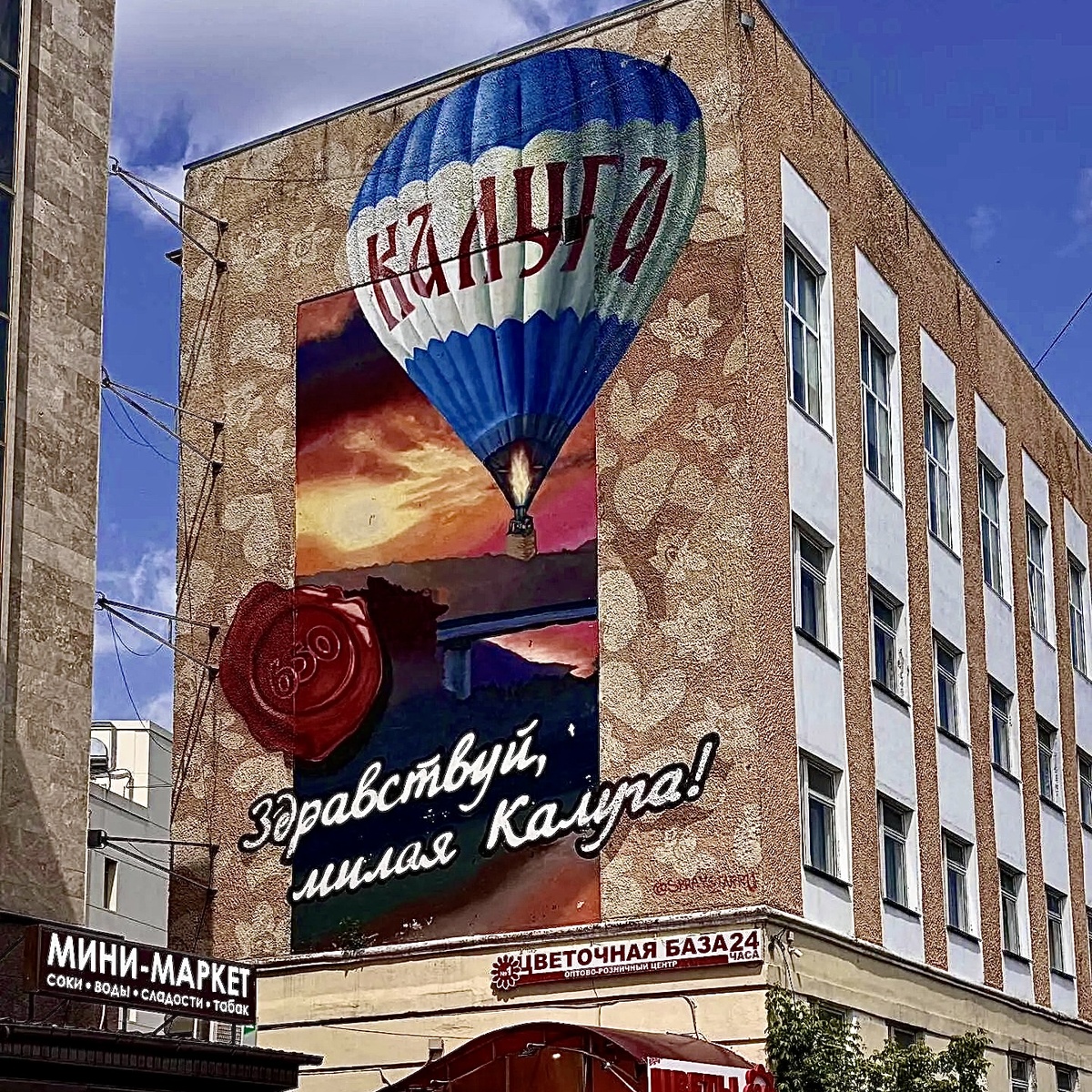 Картина появилась к 650-летию Калуги, которое отмечали в августе 2021 года. Она всем понравилась. Но некоторые заметили, что на соборе нет крестов. После скандала кресты дорисовали.