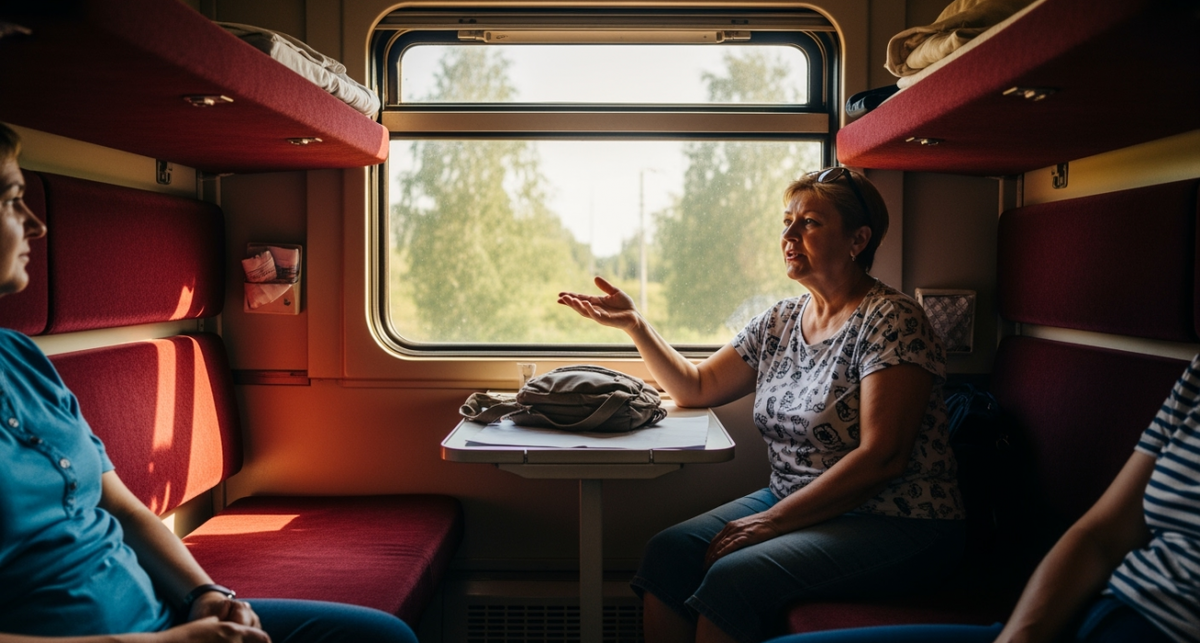Остаток пути прошёл в разговорах. Валентина рассказывала истории из своей жизни на железной дороге — о пьяных пассажирах, о контрабандистах, о романтических встречах и расставаниях, свидетелем которых ей доводилось быть. Марина слушала с интересом — несмотря на явные преувеличения, в этих байках было что-то подкупающе живое. Андрей тоже отложил книгу и включился в беседу, рассказывая о своих командировках. Даже Дима проснулся окончательно и поведал, как ездил автостопом по Золотому кольцу.