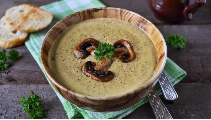 Идеальный вариант для элегантного ужина. Ингредиенты: · Грибы (шампиньоны + немного белых для аромата) — 600 г · Лук — 1 шт. · Чеснок — 1-2 зубчика · Сливки (20-33%) — 200 мл · Бульон (овощной или куриный) — 1 л · Сливочное масло — 2 ст. л. · Соль, перец, мускатный орех — по вкусу · Сухарики или гренки — для подачи Приготовление: 1. В кастрюле растопите сливочное масло. Обжарьте на нем лук и чеснок до мягкости. 2. Добавьте нарезанные грибы и готовьте, пока жидкость не выпарится, а грибы не подрумянятся. 3. Залейте грибы бульоном, доведите до кипения и варите 15-20 минут на среднем огне. 4. Снимите с огня и погружным блендером измельчите суп до однородной кремовой текстуры. 5. Верните кастрюлю на небольшой огонь, влейте сливки, постоянно помешивая. Доведите до кипения (но не кипятите!), добавьте соль, перец и щепотку мускатного ореха. 6. Подавайте с гренками и веточкой тимьяна. Приятно аппетита!!!