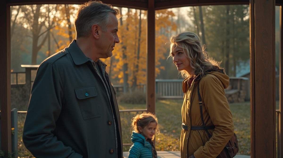 Ольга и Андрей присели во дворе в беседке. Рядом весело бегала девочка. Они не замечали Ирину — для них в этом мире не было ни слежки, ни подозрений, ни разъедающего недоверия.
