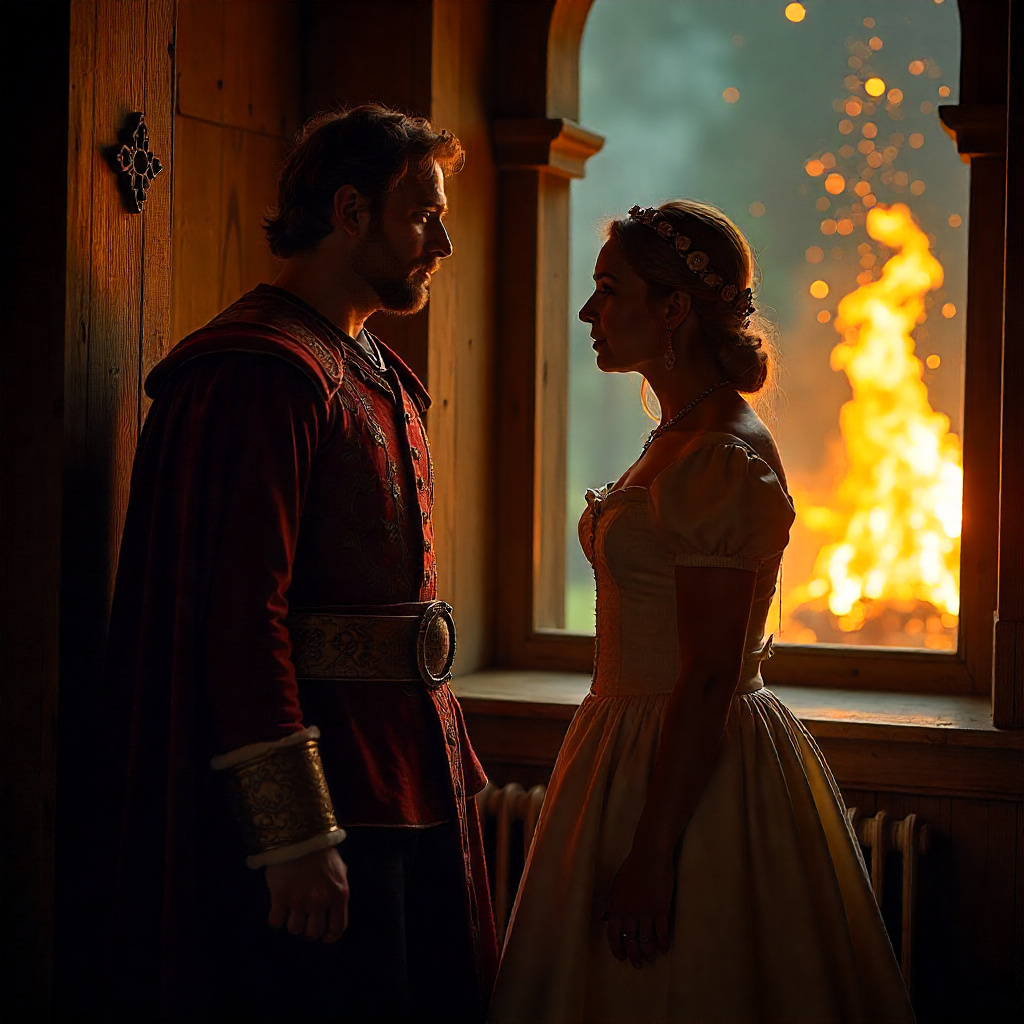 Дверь в их покои тихо закрылась, отгородив от шума пира внизу. Эрих сбросил потрепанный камзол на спинку кресла, потянулся, кости затрещали. Лиана, уже снявшая тяжелый парадный утренник, стояла у окна, глядя в ночь, где факелы санитаров все еще мелькали на поле боя.