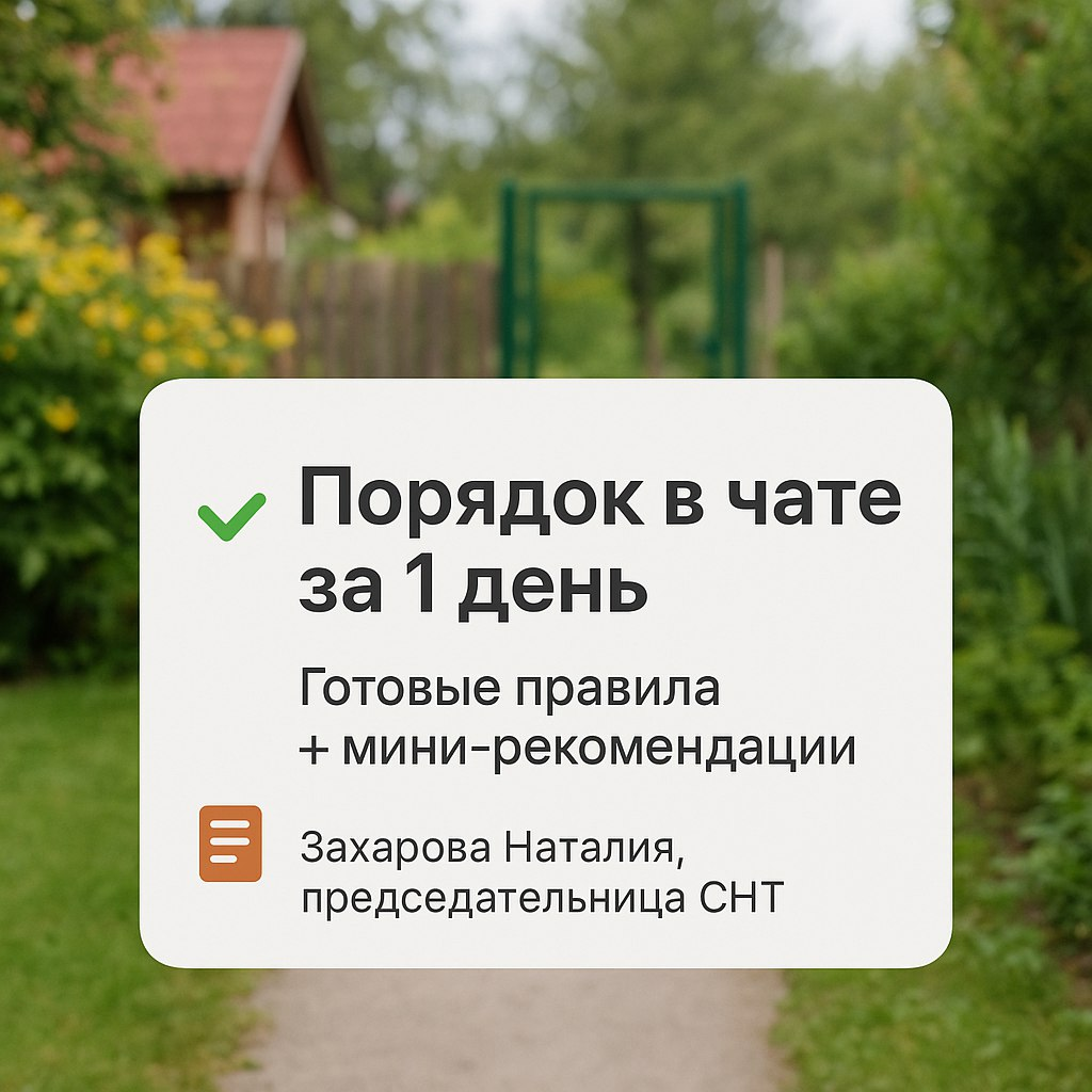 А вы модерируете сообщения в ваших местных чатах СНТшных? У нас есть 3-5 представителя оппозиции. Ладно бы писали что-то предметно, а то просто слухи распускают и толку 0. В итоге кто-то вступаем с ними в полемику и это портит атмосферу ( Диктатура и порядок! (с) Стоит составить Правила для чата и закрепить их, потом модерировать и банить флудильщиков. Или сделать канал, где только информация от правления, без возможности комментирования и канал "болталка" для всего и всех, но даже там стоит следить за тоном и вектором. По закону утверждать «правила чата» на общем собрании не обязательно. - ФЗ-217 о садоводческих товариществах и ваш устав. Они не требуют правил для неофициального чата, но регламент официальных каналов должен быть закреплён внутренними актами. Вы устали от бесконечного флуда, взаимных обвинений и «срочно, но непонятно» в общем чате? Правление тонет в личках, соседи ругаются, важные сообщения теряются. Я сделала готовый файл «Правила чата СНТ», который снимет хаос и верн