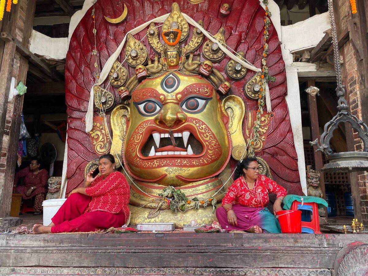 Я же скажу лишь, что на время праздников открывают обычно скрытую маску Акаша Бхайрава. Считается, что его облик здесь настолько ужасен, что лучше в обычные дни держать его закрытым.
