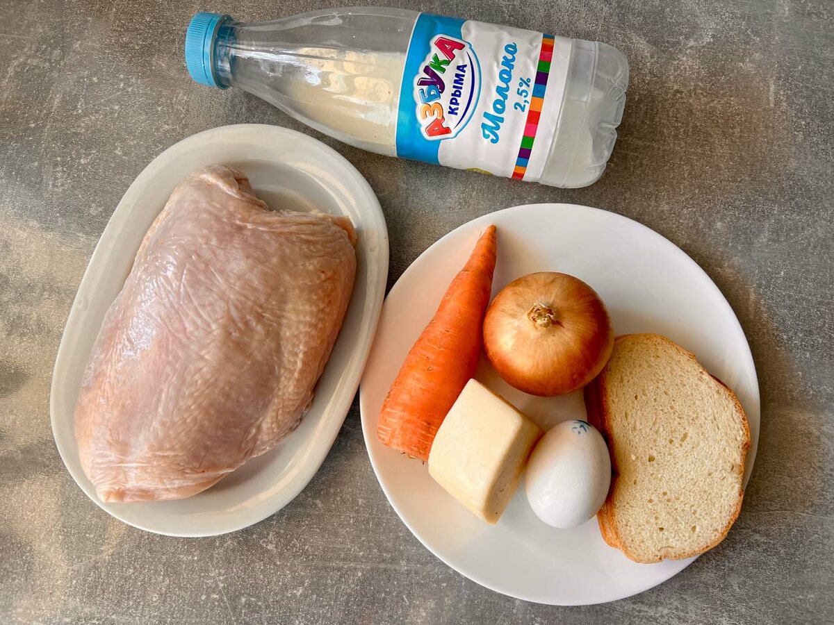 😋Куриное мясо - источник белка. В котлетах мясо измельчается и легче усваиваются полезные вещества и витамины, которые содержатся в большом количестве. Куриные котлеты - это очень полезное и вкусное блюдо! Идеальный набор для котлет: мясо, яйцо, пшеничный хлеб (лучше белый батон), молоко, лук репчатый, морковь, сыр твердый и соль, перец душистый по вкусу. Нужно подготовить мясо курицы: отделить от костей и шкуры, оставив немного мяса с жиром. Самая диетическая часть у курицы - филе, но котлеты могут быть суховаты. Чтобы котлеты были сочнее, можно брать мясо от бедер. Если взять 400 граммов мяса, то получится восемь котлет. Фарш я никогда не покупаю, а готовлю сама. Поэтому котлеты у меня получаются очень вкусные. Мясо можно измельчить ножом. Я использую мясорубку, решетку беру крупную. Молоть мясо на мясорубке намного быстрее, только не нужно сильно измельчать. Лук очистить, измельчить, на 400 граммов мяса я беру 100 граммов лука. Если не все любят лук, то можно брать в два раз