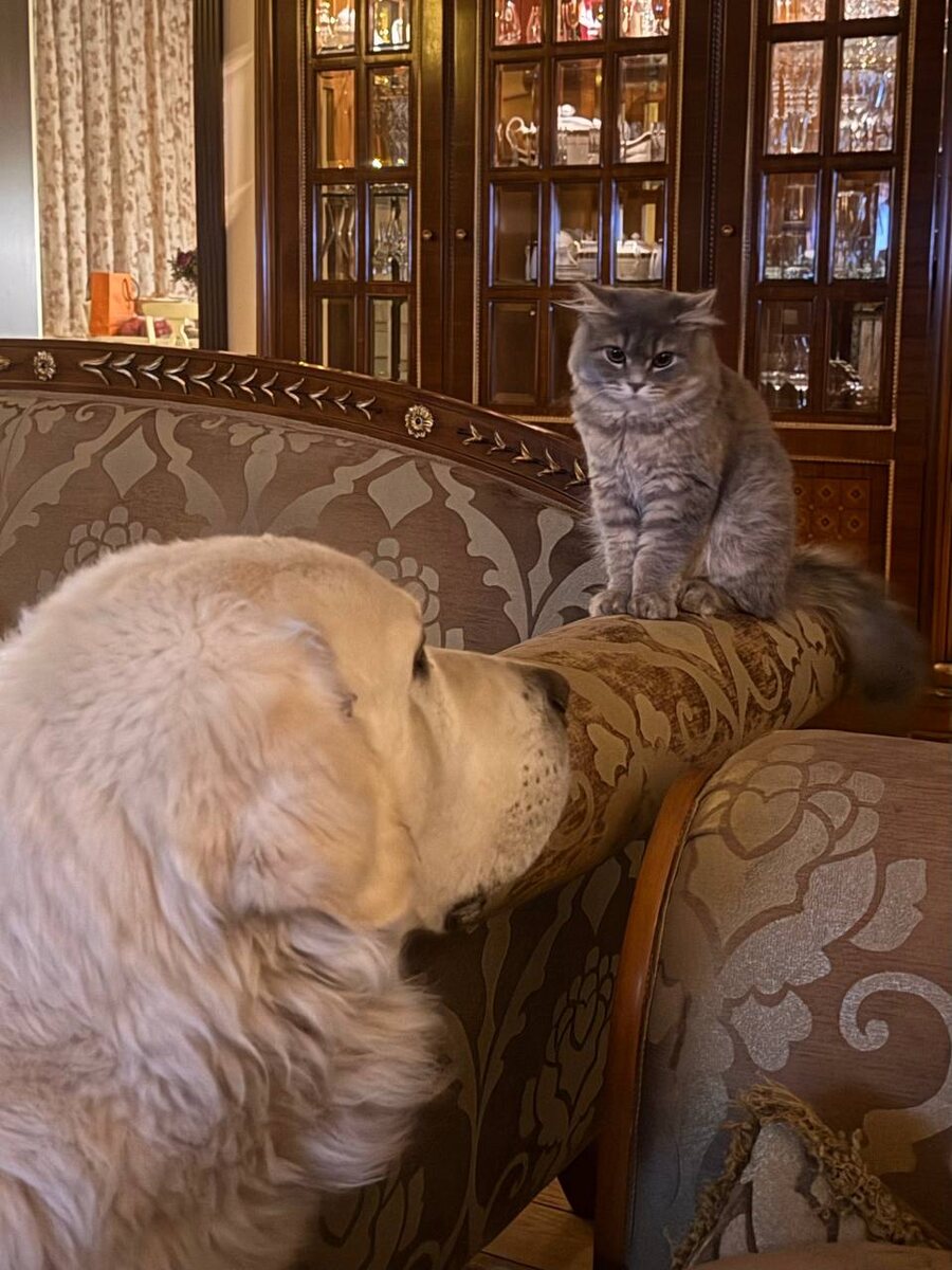 Лучше всех из нашей домашней стаи к Беатриче⚜️ относится Берненок🔥 Оно и ожидаемо: самый ласковый и послушный из всех сущностей, населяющих наш дом, Берни🔥 просто не мог не захотеть подружиться, всячески поддержать и поиграть. Надо отметить, юная Стервь⚜️ отвечает ему полной взаимностью. И даже когда он ее с хвоста до головы облизывает, Бетти⚜️ только скромно трогает его лапкой, типа ‘ну не надо, не стоит’, никогда не позволяя себе выпускать острые когти🐾