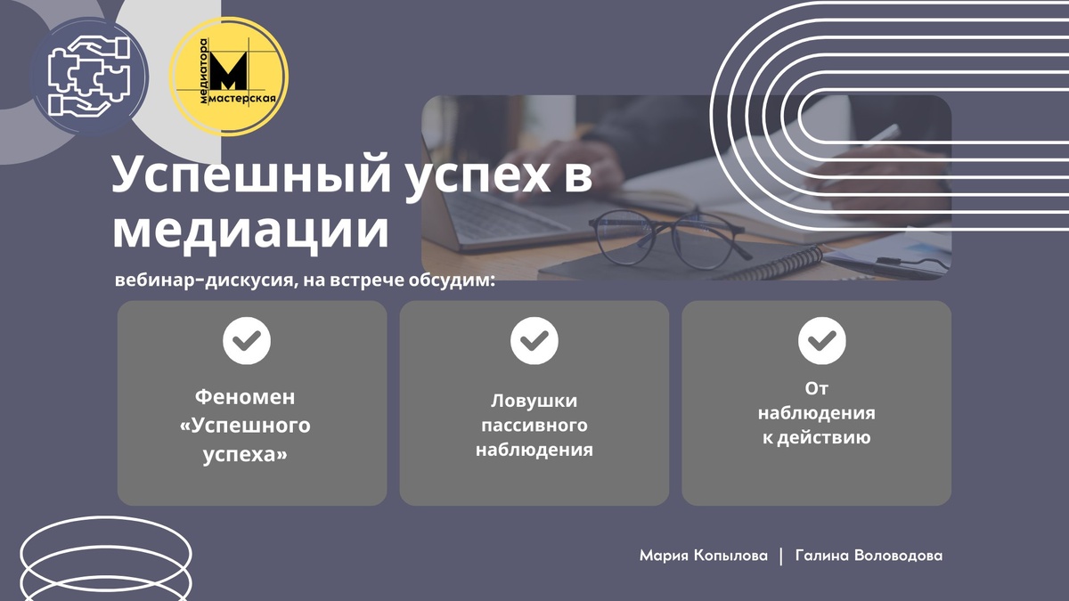 Сегодня на площадке Метод Медиатора прошел вебинар-дискуссия на тему «успешный успех в медиации». Резюмируем итоги этой встречи: Да, наблюдать за коллегами можно и нужно. Но насмотренность нужно формировать правильно, относиться к увиденному критически. Важно помнить, что показывать все сложности в публичном пространстве никто не будет. И то, что мы видим в публичном пространстве-лишь вершина айсберга. А порой и успехи в социальных сетях сильно преувеличены, если и не сказать больше-успехи могут быть ложными! Поэтому крайне важно каждому медиатору понять, что успех -это понятие индивидуальное. У каждого он свой. Наблюдать за другими можно и нужно, но лишь для дополнительной мотивации! Часто медиаторы стремятся объединяться в сообщества, союзы, ассоциации. Это важно и нужно. Однако не менее важно понимать, что не всегда в сообществе создается поддерживающая атмосфера для мотивации и роста. Когда в сообществе медиатор ощущает, что за счет того, что обесценивается он, его опыт,