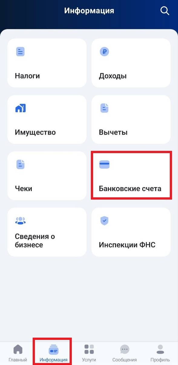 Чтобы обеспечить себе защиту от финансовых мошенников, неплохо было бы провести ревизию того, что нужно защищать. Нередко в практике случаются ситуации, когда человек даже не знает в каких банках у него открыты счета. Это создает дополнительный риск, т.к. человек может даже не знать что происходит с его счетом. Вполне возможны ситуации, когда мошенники могут выпустить кредитную карту в банке, которым вы давно уже не пользуетесь. Или же перегонять денежные средства, полученные преступным путем, через выпущенные на вас карты. В любом случае, точно знать какие счета и в каком банке у вас открыты и иногда перепроверять их – будет не лишним. Давайте рассмотрим как это можно сделать, чтобы взять ситуацию со счетами под контроль. Нам понадобится приложение Федеральной налоговой службы (ФНС), которое называется «Налоги ФЛ». Открыв приложение переходим в раздел «Информация», далее нажимаем на «Банковские счета». Потом переходим в «Сведения о счетах в российских банках». Перед вами выходит списо