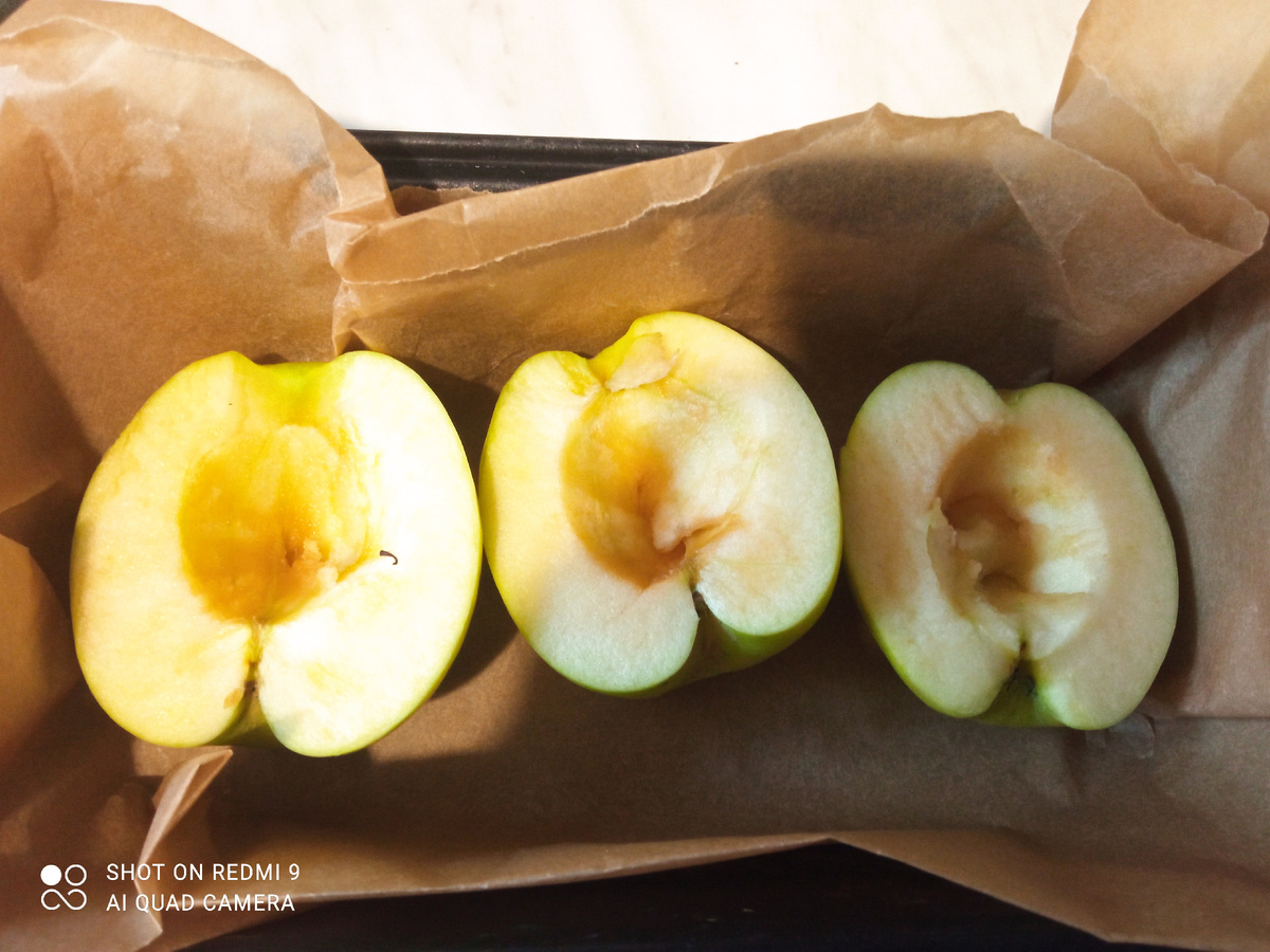 Давно подготовила фото, но ни как не могла собраться написать маленькую статью, как я запекаю яблоки с медом. Для начала яблоки разрезаю пополам и достаю серединку. Выкладываю на небольшой противень на бумагу. Серединки яблок заполняю медом. И ставлю в духовку на 30-40минут при тем пературе 220-240 градусов. А вот и готовые яблочки! Приятного аппетита.