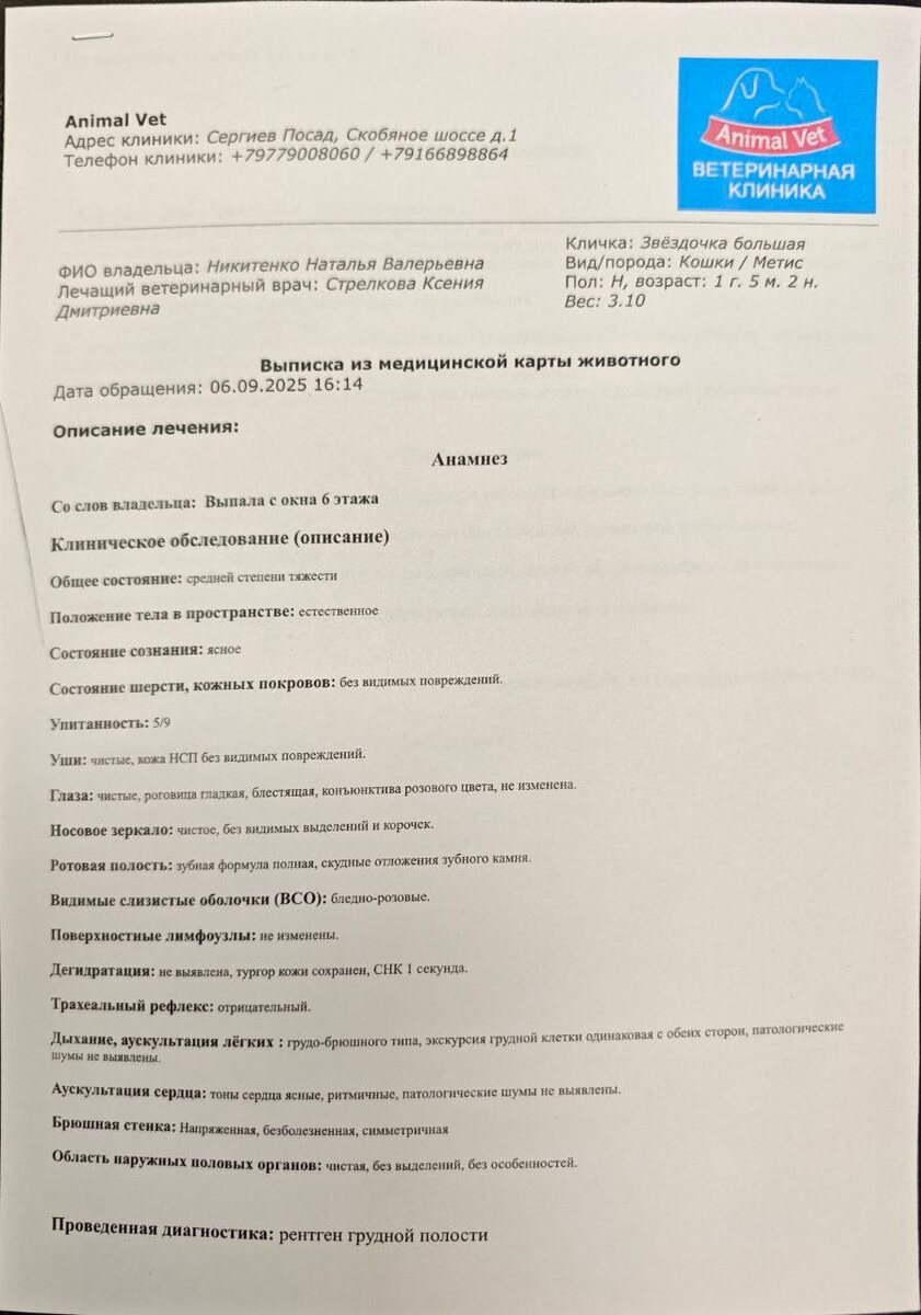 🙏 ЧУДО СЛУЧИЛОСЬ! Наша отважная Груня идёт на поправку! Вчера ночью кошечка была в стационаре, где врачи смогли стабилизировать её состояние после страшного падения с 5–6 этажа. Малышка показала настоящий характер — не сдалась и боролась за жизнь! 🏥 Сегодня у нас отличные новости: Груня переехала в «Дом Хвостиков Шанс», где будет проходить полное восстановление под чутким присмотром волонтёров. Теперь у неё есть тёплое место, забота и внимание. Наша звёздочка (а именно так мы назвали её сначала за силу духа) постепенно приходит в себя. Хвостик двигается, аппетит возвращается — всё это прекрасные признаки выздоровления! 🐱 В «Доме Хвостиков Шанс» Груня не только поправится, но и будет ждать свою новую любящую семью. Уверены, что такая отважная кошечка заслуживает самого лучшего дома! Спасибо всем, кто переживал и поддерживал нашу малышку. Ваша забота и внимание очень важны для её восстановления. 🔄 Давайте вместе пожелаем Груне скорейшего выздоровления и найдём для неё самых заб