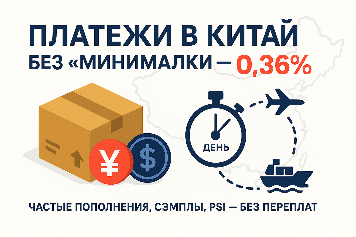 Платежи поставщику в Китае без «минималки»: как 0,36% помогает держать сток, маржу и темп
