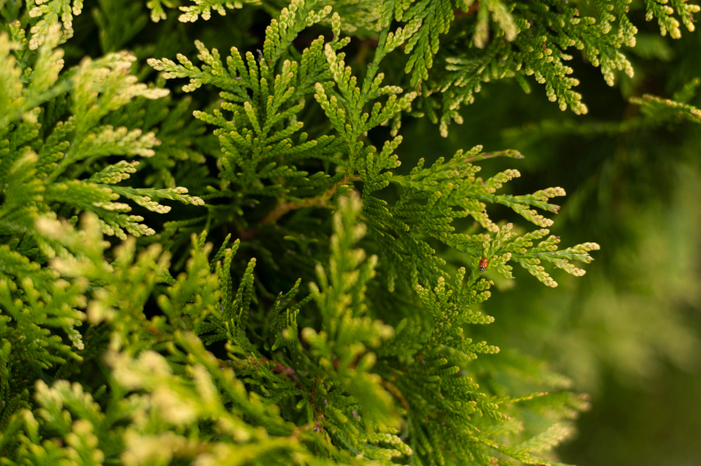 - Туи: Наиболее уязвимы. Им нужно всё: и обильный полив, и мульчирование, и защита от солнца, и обвязка от снега. Наиболее капризны в этом плане сорта с жёлтой хвоей.