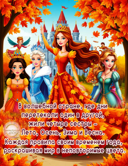 Но однажды, Лето, очарованное солнцем и ласковыми волнами, задержалось. Ей так хотелось еще немного поплавать в реке, погреться на теплом песке.