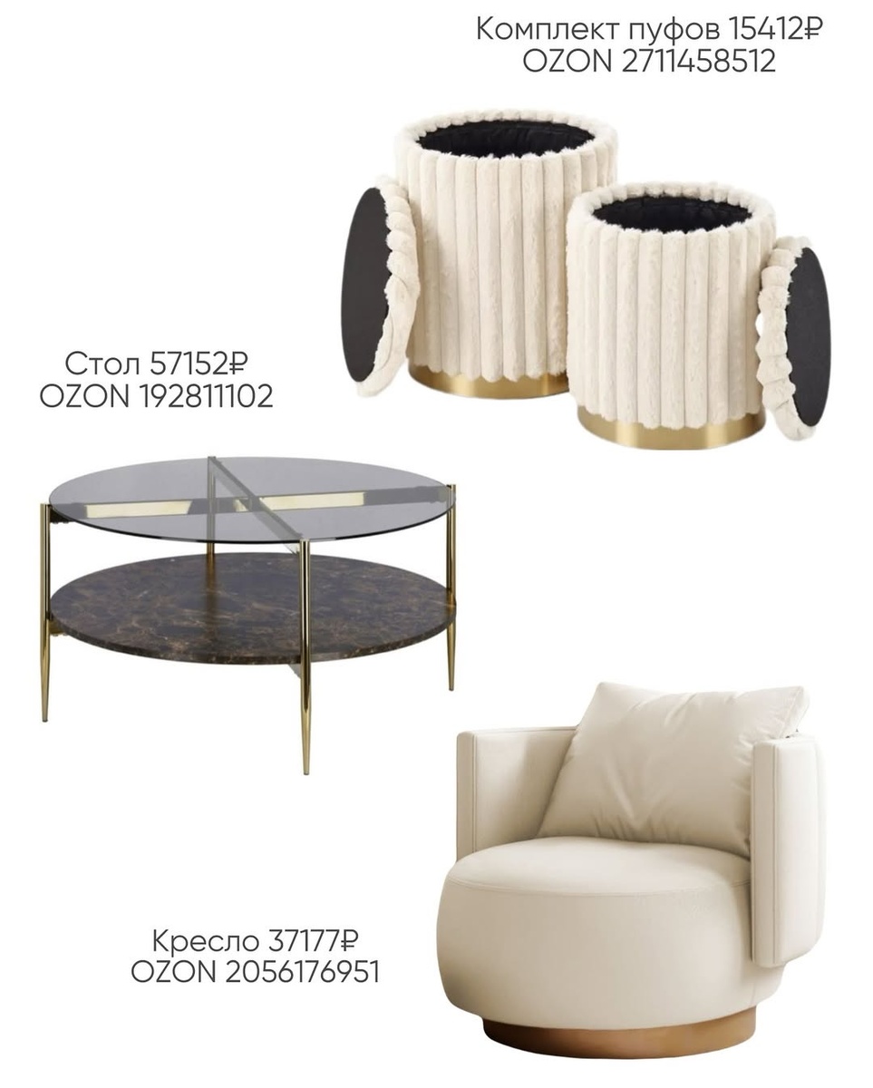 Иногда, чтобы квартира зазвучала дорого и цельно, достаточно двух-трёх правильных акцентов: стола на тонких ножках, кресла со скульптурным силуэтом, пары фактурных пуфов. Я собрала 13 находок с OZON — каждая вещь с фото, ценой и артикулом, а ещё с подробным разбором и мини-советами стилиста по интерьеру. Идём строго по порядку.