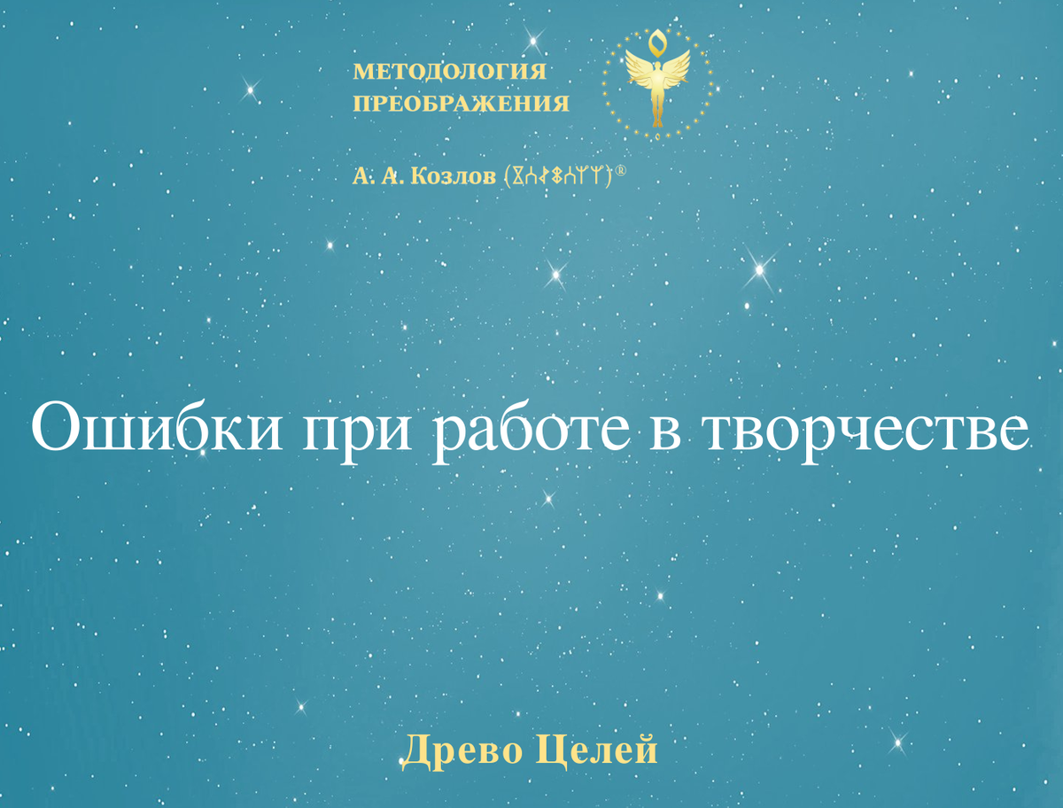 Ошибки при работе в творчестве. Кого можно назвать мудрым? Про закономерный переход на высокий план бытия. На вопросы отвечает Александр Анатольевич Козлов – автор Методологии Преображения. «2. Отклонение от вектора движения Мировой Воли при стремлении сделать благое дело исходя из своих сущностных интересов, из проявления тщеславия и гордыни, ради самопиара, самоутверждения и т.д. По этому поводу есть известное изречение: «мудрые выигрывают неохотно», то есть чем мудрее человек, тем незаметнее и спокойнее его движение и работа в мире, но значение их велико. 3. Необходимо учитывать индивидуальную скорость движения по пути и не пытаться любой ценой пробиться раньше времени на верхний уровень. Резкие движения выносят человека в запредельное, где он подвергается жесткому воздействию стихий и воле случая, более того, он может получить удар Неба, который разрушительно действует на живую систему и может увести ее с поля жизни. Если человек подошел к определенному пределу и чувствует, что по