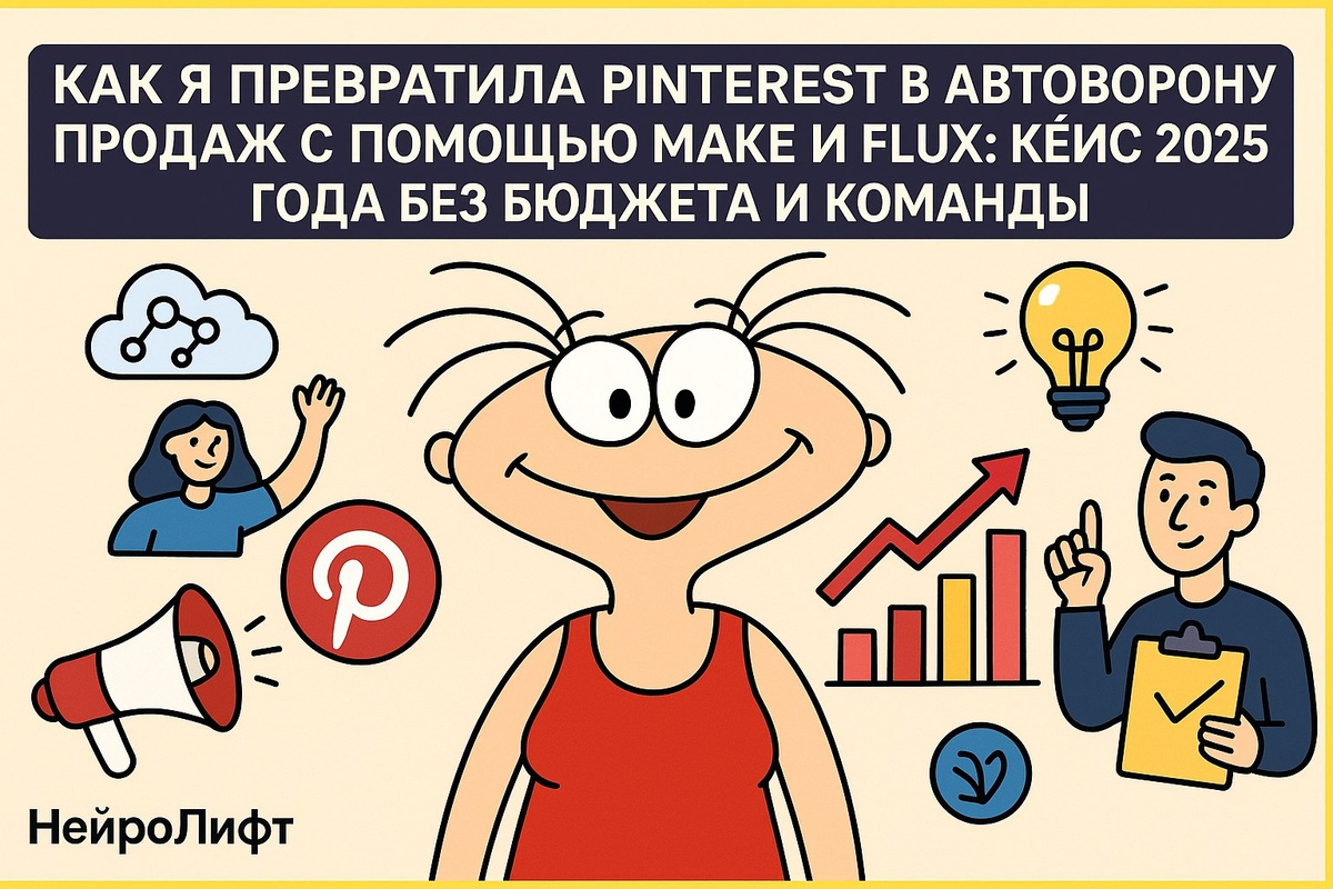 Как я превратила Pinterest в автоворонку продаж с помощью Make и Flux: кейс 2025 года без бюджета и команды