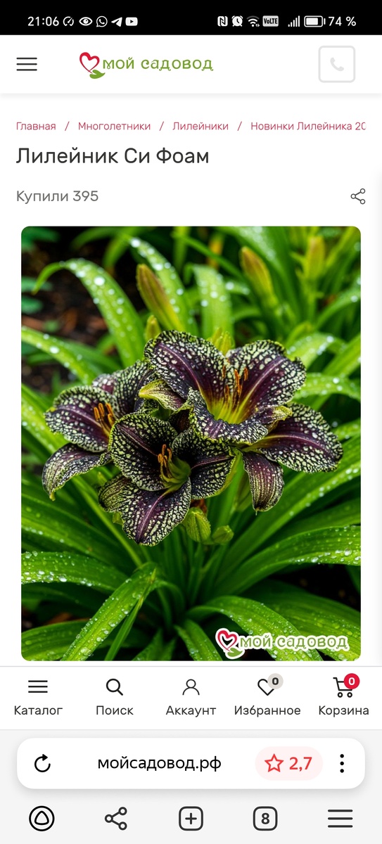 Услужливый интернет с подхалимствующим искусственным интеллектом совсем распоясались. Хотя, что это я? Они - бездушные создания, распоясываться могут только наши с вами братья по разуму. Вот уж кто пустился во все тяжкие, и искусственный интеллект лишь помогает им в этом без зазрения совести и без задней мысли, ибо не имеет ни того, ни другого. Помните, как у Маяковского: "Хожу, гляжу в окно ли я - цветы да небо синее, то в нос тебе магнолия, то в глаз тебе глициния." В принципе, это теперь - о любом человеке, кто заказывал с телефона хоть один саженец. Контекстная реклама оных, новых и неведомых, лезет на каждой вкладке. Не магнолии с глициниями, но флоксы, лилейники. И все такие... что мама дорогая! Повеселю вас в первое сентябрьское воскресенье: "Си фоам" - стало быть, "пена морская". НУ-НУ. Это мне ясно, что таких лилейников не бывает. Но я точно знаю, что есть куда более наивные люди, к тому же неофиты от садоводства. Ну вот как устоять им, когда мошенники дурят голову и предла