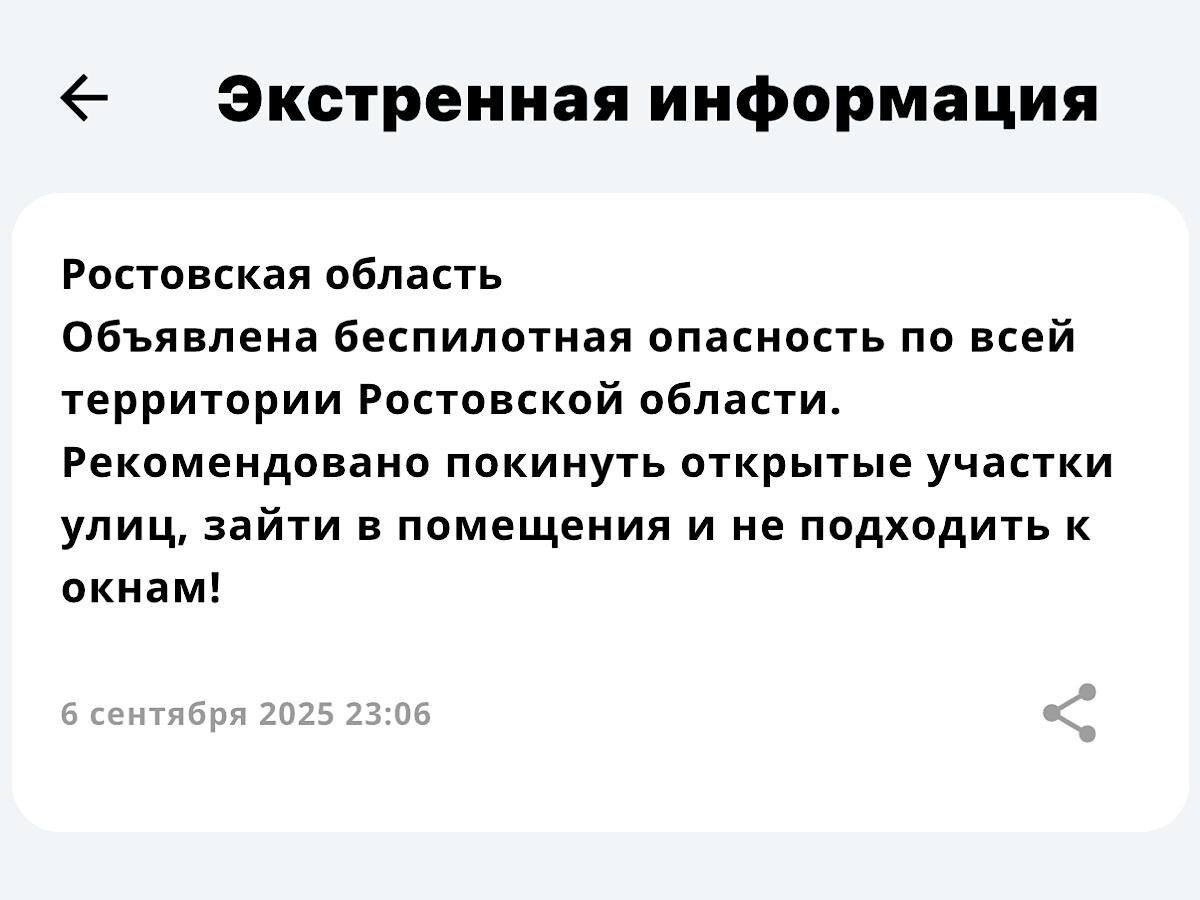 ‼️В Ростовской области объявлена беспилотная опасность ‼️