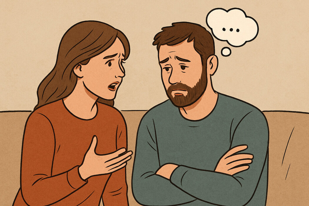 Женщины часто жалуются, что мужчины будто глохнут, когда речь заходит о чувствах. Она рассказывает о своей боли, делится обидой, ждёт, что он откликнется, а в ответ слышит короткое: "Да всё нормально" или вовсе тишину. Кажется, что он равнодушен и вообще не хочет разговаривать. На самом деле в такие моменты у мужчины запускается тревога. Разговор о негативных эмоциях воспринимается как угроза. Тревога блокирует способность к эмпатии: вместо того чтобы слышать женщину, он думает только о том, как поскорее избавиться от этого ощущения. Один мужчина может начать спорить, другой отмахнуться, третий уйти в молчание. Внешне это выглядит как игнор, хотя внутри происходит борьба с невыносимым состоянием. Здесь важно понять глубинную причину. Для многих мужчин подобные разговоры связаны не только с тревогой, но и с чувством вины. В детстве на мальчиков часто возлагали слишком много ответственности: они должны были быть опорой для мамы, защищать сестру, нести ответственность за счастье девочек в