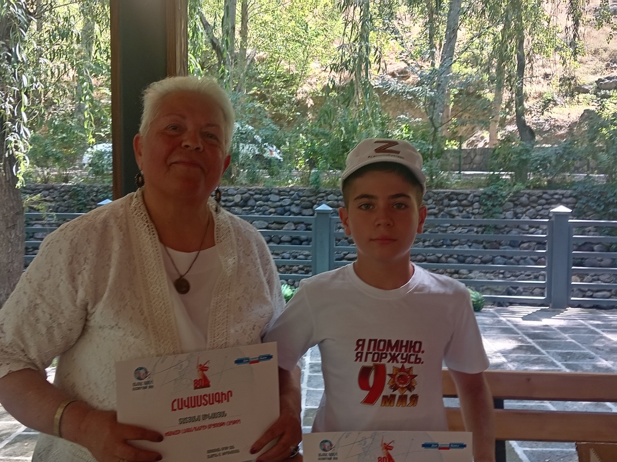 В одном из чудесных природных, зеленых уголков, зон отдыха, у реки Касах, знаменитого Аштаракского ущелья, состоялось большое и значимое мероприятие-вручение наград, побелителям Конкурса "Легенды Фронта" и " Великая Победа. Наследие поколений", объявленного среди педагогов и учеников всех образовательных учреждений Армении, в рамках 80и летия Великой Победы, ОО "Дом русской книги" и "Бессмертный полк". В проекте приняло участие 400 человек! В числе победителей, отмечу свою любимую школьную учительницу (на пенсии) Татьяну Александровну Минасян, активного научного и общественного деятеля, которая внесла и вносит неоценимую лепту в воспитании молодёжи посредством блестящего педагогического таланта, преподнесением знаний и, несомненно, приучением нового поколения к уважению своих истоков и хранению исторической памяти! Будучи автором многочисленных статей, в том числе и об армянах, участниках ВОВ, увековечивая, тем самым, имена извесных и неизвесных героев, внесших неоценимый вклад в Поб