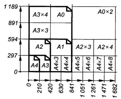 А2 (420 × 594 мм), А1 (594 × 841 мм), А0 (841 × 1189 мм) – для крупных деталей и сборочных чертежей