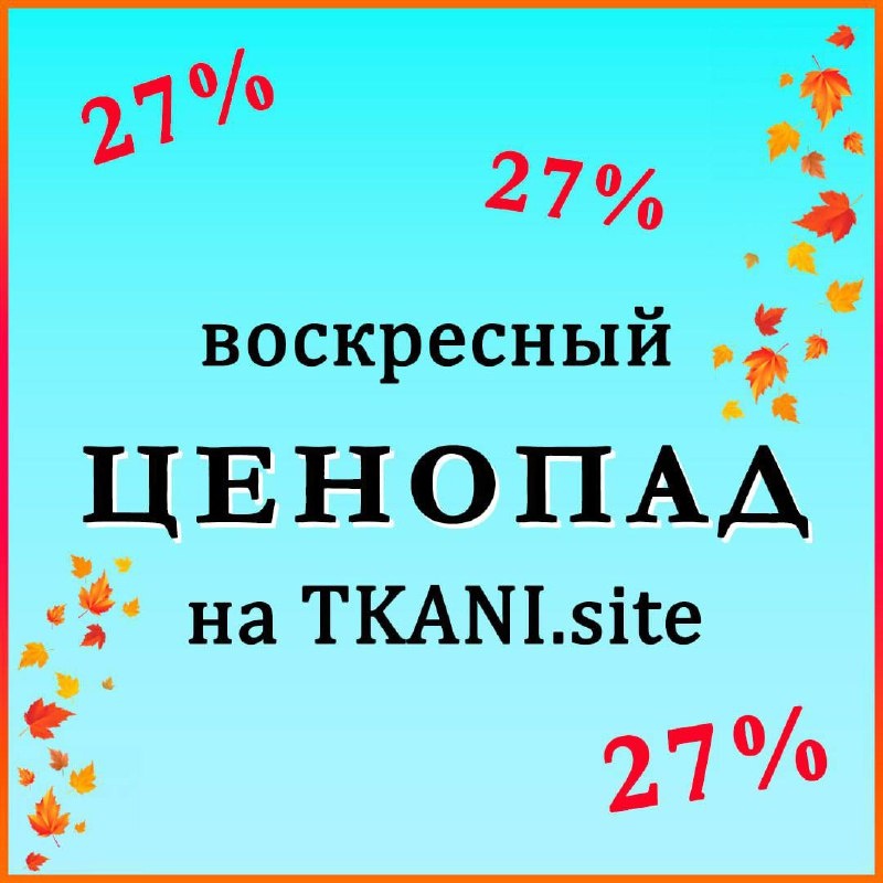 Наступила осень, падают листы, Мне никто не нужен, кроме ты. И скидки 27% на tkani.site Дела откладывайте, у вас сегодня шопинг. Промокод 7SPT27 дает вам скидку 27% на все товары без скидки. Работает промокод до 9 утра 8 сентября. Представляете? ❗️ Купон вводите в специальное поле в корзине, когда оформляете заказ. Обязательно нажмите "Сохранить" рядом и проверьте, что купон применился. ВАЖНО! Если в корзине есть товары со скидкой, то поле для купона не появится! Оформляйте товары со скидкой отдельно ❗️ И помните, что мы за щедрость. Смело делитесь промокодом со всеми, кто не спрятался