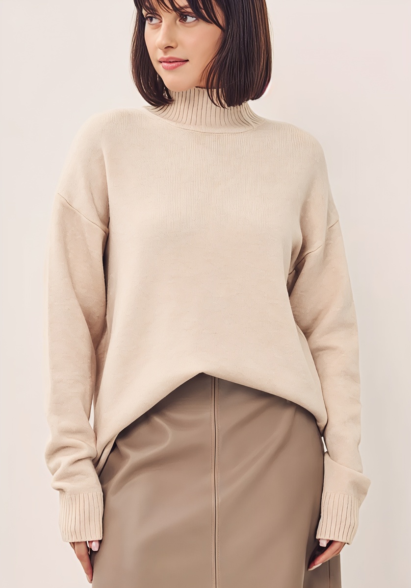 Кашемировый свитер оверсайз с прямыми брюками — современный элегантный образ без намёка на возрастные ограничения.