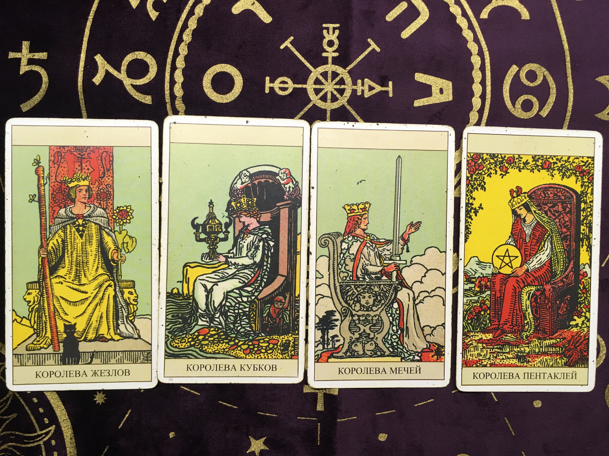 Ваше задание: зайдите в гости... к себе. Осмотрите свое жилое пространство. Что в нем говорит о каждой из Королев? Где висит вдохновляющий постер (Жезлы)? Где стоит ваша любимая чашка для чая (Кубки)? Где лежит блокнот с важными записями (Мечи)? Где находится самое ухоженное, «богатое» место (Пентакли)? Осознайте, как вы уже проявляете эти энергии в своей жизни.