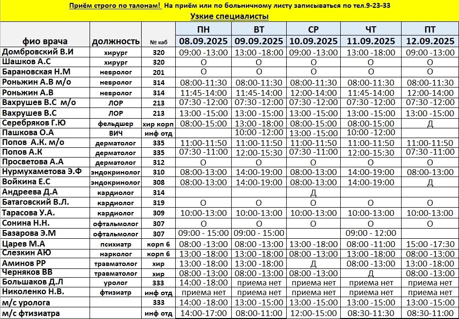 Актуальный график работы врачей с 8 сентября • Городской поликлиники; • Детской поликлиники; • Стоматологической поликлиники; • Женской консультации. Возможны изменения. Уточняйте расписание на официальных ресурсах или по телефону кол-центра: 9-23-33. 👉 Типичный Снежинск