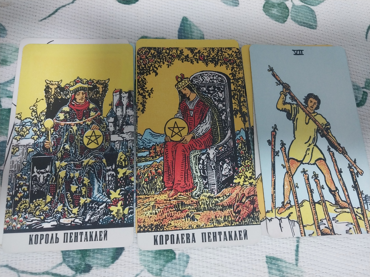 🔮 Сегодня я хочу вместе с вами провести небольшой расклад на тему того, что происходит в его жизни прямо сейчас. 🌟 Добро пожаловать на канал «ТАРО ТВОЕГО ДНЯ »! Меня зовут Татьяна. Здесь мы открываем тайны вашей судьбы через символику карт Таро💖. Присоединяйтесь и найдите ответы на важные вопросы! Сразу же из колоды выпадают ваши карты, что свидетельствует о том, что и вы, и он готовы к открытому разговору. Ваши энергии ориентированы друг на друга: вы — Королева Пентаклей, а он — Король Пентаклей. Это говорит о том, что между вами существует взаимопонимание и высокая степень расположенности друг к другу. Возможно, мы рассматриваем супружескую пару, так как Пентакли ассоциируются с долгосрочными и надежными отношениями. Если же это не так, то вы оба находитесь в земной стихии, что может свидетельствовать об акценте на карьере и финансовом благополучии. 🌱 Из расклада также видно, что рядом с вами стоит Семёрка Жезлов. Эта карта указывает на наличие некоторого кризиса. Однако речь и