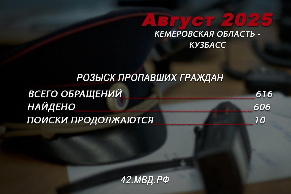 В августе в Кузбассе в розыске находились 616 человек. 606 найдены сотрудниками полиции, в том числе при содействии граждан, поиски 10 человек продолжаются. Многие поисковые мероприятия проходят с участием волонтеров и общественных организаций, которые оказывают помощь полиции в распространении ориентировок, в размещении информации в социальных сетях и многом другом. Полицейские выражают благодарность активистам за совместную работу. ✍✍✍ТУТ✍🗞🗞ЗДЕСЬ🗞 ⚡️BOOST КАНАЛА⚡️