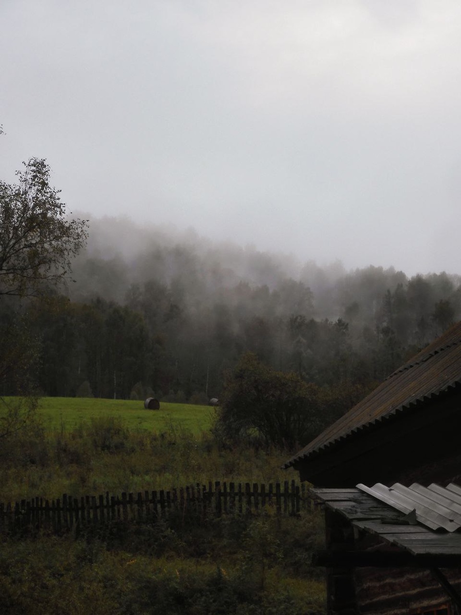 Рано наши кошочки закрыли летний сезон! Всё, переместились на топчан, на чердаке ночевать не хочут. Всё чаще хочется протопить печку. Дым вплетается в низкое небо. 🌬️ Фото в коллекцию утренних туманов. Каждое утро с нами.