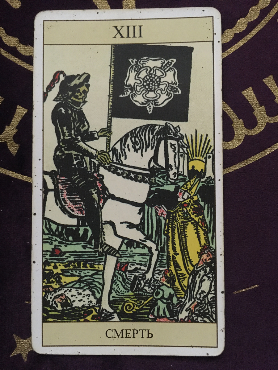 Мы пережили глубокую паузу и смену перспективы с Повешенным. Но что, если за остановкой следует не просто новое видение, а необратимая, тотальная трансформация? Встречайте самый пугающий и самый непонятный аркан, который на самом деле не про конец, а про освобождение, — Смерть. Не конец, а трансформация На карте мы видим фигуру Смерти в доспехах, восседающую на белом коне — символ чистоты и неотвратимости происходящего. Он движется вперед, не обращая внимания на мольбы императора, не различая возраста (король) и статуса (девушка). Папа римский (Иерофант) склоняется перед ним — даже высшая духовная власть бессильна перед этим законом мироздания. Но на заднем плане — восходящее солнце между двумя башнями, знак нового начала, возрождения после конца. Смерть — это архетип Необратимой Трансформации, Конечной Стадии, Освобождения от Отжившего. Это не физическая смерть, а смерть старого «Я», старой идентичности, старых привычек, отношений или обстоятельств, которые изжили себя и мешают росту.