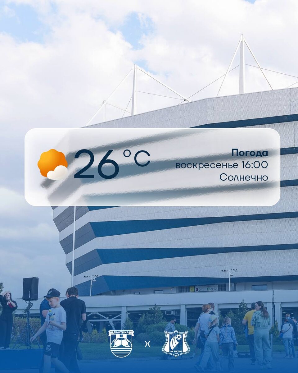 ЖАРА 🔥 Балтийцы, сегодняшний день по-настоящему тёплый для осени. К старту матча с «Ростовом» воздух прогреется до +26 градусов! Уверены, на поле будет не менее жарко! Пропустить такое никак нельзя! Ждём вас уже с 14:30 на «Ростех Арене». БИЛЕТЫ 💙 : 💙