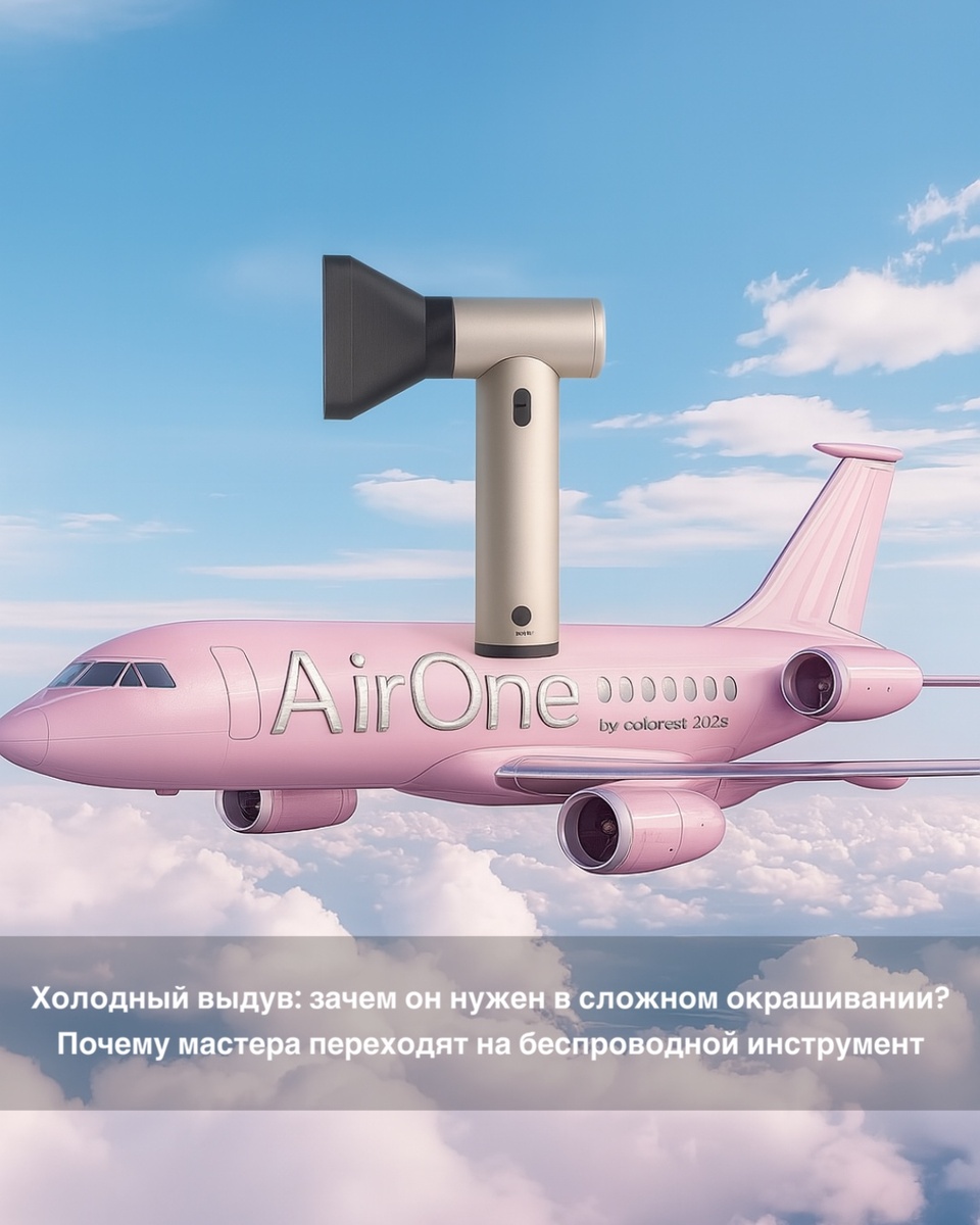В окрашивании важна каждая деталь Колористы давно знают: результат зависит не только от красителя и техники, но и от инструментов. Всё чаще мастера говорят о холодном выдуве. Если раньше поток воздуха ассоциировался только с сушкой, сегодня он стал незаменимым помощником в сложных техниках. Холодный поток позволяет мягко убрать короткие волоски, делает секции чище и помогает сохранить качество волос. Почему я отказался от проводов Я долгое время пользовалась обычным феном и сталкивалась с одними и теми же проблемами. Провод путался, мешал менять угол работы, руки уставали после нескольких часов окрашивания. Когда в руки попал беспроводной AirOne, работа изменилась. Устройство весит всего 410 грамм и это значит, что рука не устаёт даже после многочасовой сессии. Провод больше не мешает. Можно спокойно менять руку и положение инструмента, не отвлекаясь. Особенно я почувствовала разницу на тонировании: когда работаешь по влажным волосам, каждая секунда важна. Без проводов процесс стал бы