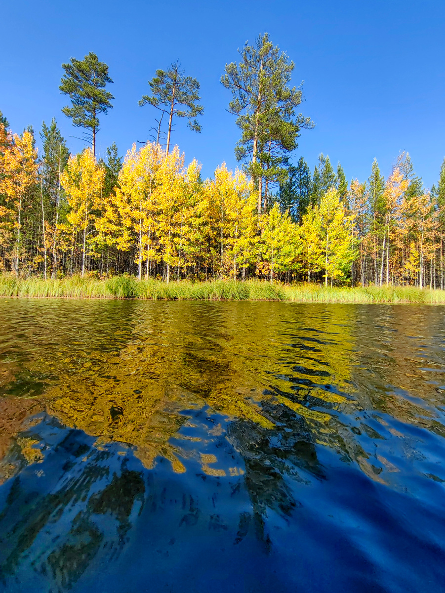 Скоро будет метровый лёд и сугробы местами в человеческий рост... а пока золото купается золоте. Зелень остается только у травы по берегам рек и озер.