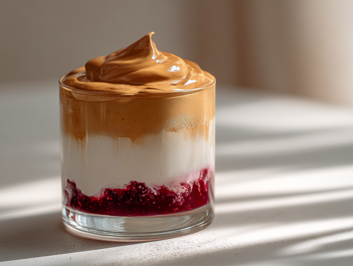 Несколько лет назад интернет захватил тренд под названием дальгона-кофе. Миллионы видео в TikTok и Instagram показывали один и тот же процесс: растворимый кофе, сахар и вода взбиваются до густой пенки, а затем выкладываются поверх молока со льдом. Напиток получился простым, эффектным и сразу стал символом домашнего кофе-арта. С тех пор прошло время, и дальгону начали готовить в самых разных вариациях. Один из самых вкусных и понятных для широкой аудитории вариантов — дальгона «Ягодный чизкейк». В этом рецепте классическая техника объединяется с любимым десертом, а результат напоминает лёгкий ягодный чизкейк в стакане. В основе классического чизкейка лежит сочетание нежного сливочного сыра и ягодного слоя. Если перенести эту идею в напиток, получится: Такой вариант не требует экзотических ингредиентов, легко повторяется на домашней кухне и подходит даже тем, кто только начинает экспериментировать с кофе. Ингредиенты (на 1 порцию): Как готовить: Получается эффектный трёхслойный напиток: