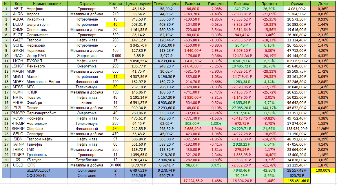 Еженедельный отчет о состоянии моего портфеля. Он снова ушел в минус 📉