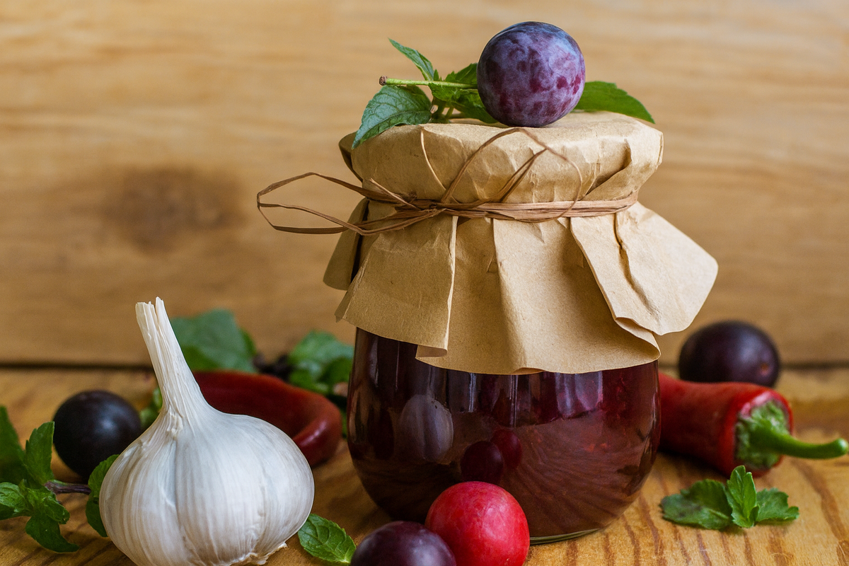 Аджика — это пикантная кавказская приправа, которая традиционно готовится из перца, чеснока, соли и трав. Родом она из Абхазии и Грузии, где ее ценят за насыщенный вкус и способность подчеркнуть мясные блюда. Однако со временем хозяйки стали экспериментировать, добавляя к классическим ингредиентам необычные продукты. Так появилась аджика из сливы — соус с кисло-сладким оттенком и характерной пряностью. Слива, особенно сорта алычи или венгерки, прекрасно сочетается с острыми специями. Благодаря ей аджика приобретает не только насыщенный вкус, но и густую бархатистую консистенцию. ⬇️⬇️⬇️ 1. Подготовка продуктов Сливы перебрать, вымыть и удалить косточки. Перцы и помидоры очистить от семян и плодоножек. Чеснок очистить. Зелень промыть и обсушить. 2. Измельчение Все овощи и сливы пропустить через мясорубку или измельчить в блендере. Масса должна получиться однородной, но не жидкой. 3. Варка Перелить смесь в большую кастрюлю с толстым дном. Варить на медленном огне около 1,5–2 часов, пери