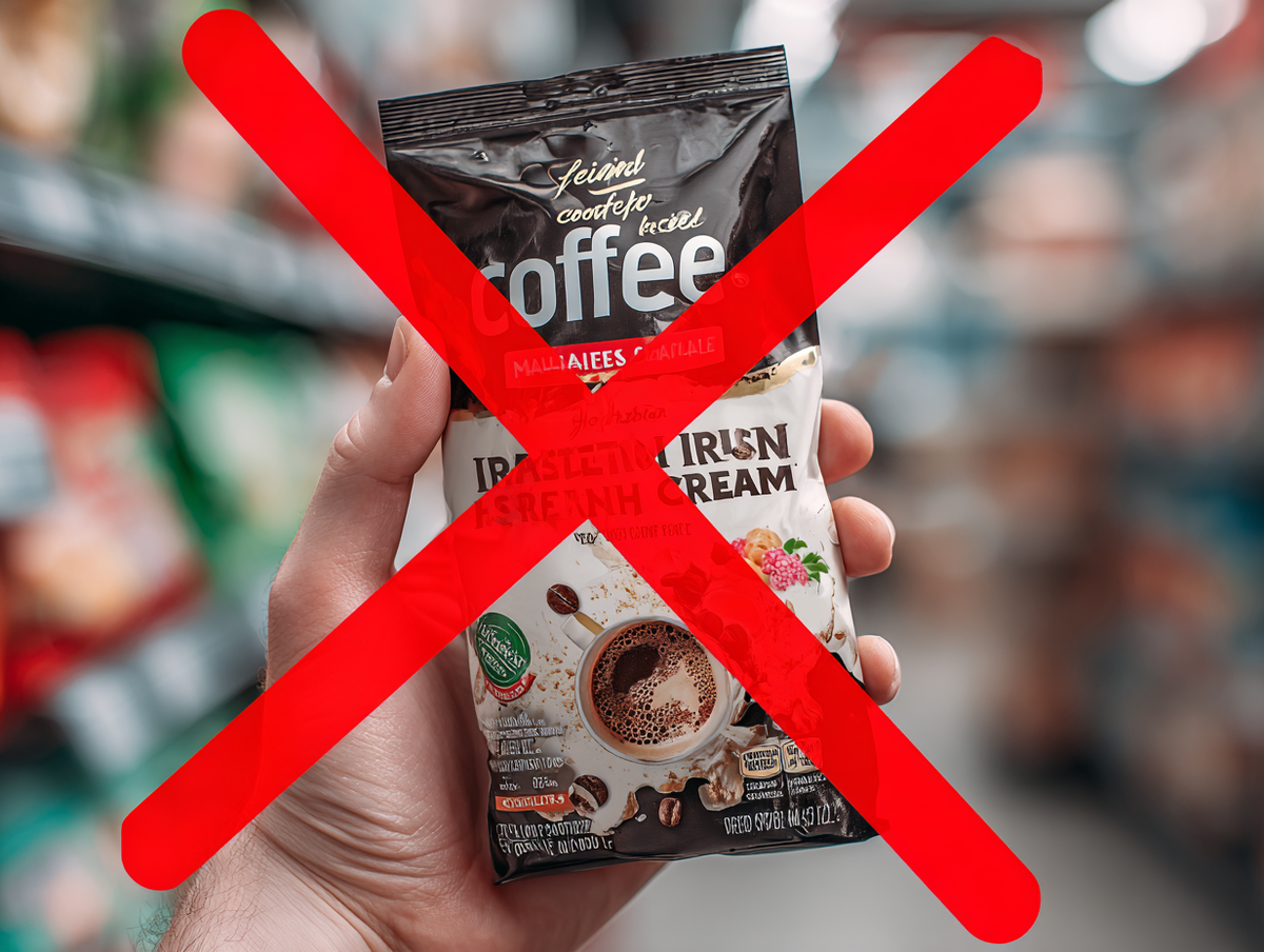 Самая распространённая ловушка. На полках можно встретить десятки вкусов: «ирландский крем», «лесной орех», «ванильный капучино». Иногда такие пачки даже пахнут через упаковку.