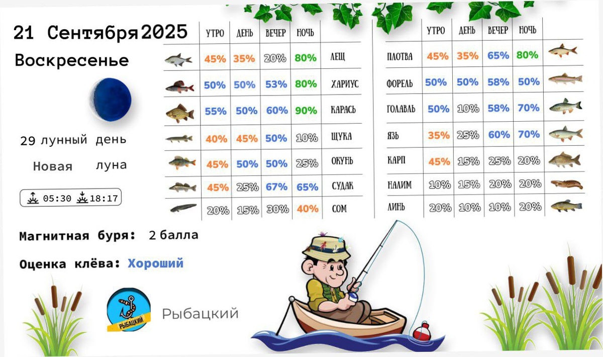 Прогноз клёва рыбы на 21 сентября по фазе и состоянию луны
