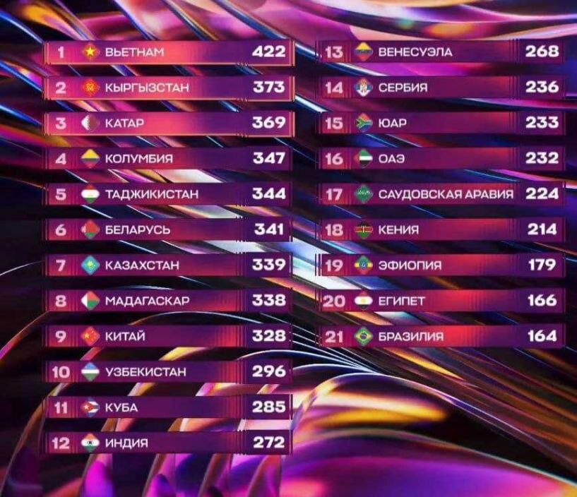 Первое после возрождения «Интервидение» состоялось в Москве на «Live Арене». Жюри подвело итоги международного музыкального конкурса «Интервидение». Победителем стал представитель Вьетнама Дык Фук, получивший 422 балла от профессионального жюри. Второе место заняло трио The Nomad Trio из Киргизии (373 балла), на третьем — Дана аль-Мир из Катара (369 баллов). «Поздравляю, Вьетнам! И мы от всей нашей страны и от всего мира поздравляем вас с победой. Вы покорили нас своим номером, своим талантом. Благодарим!» — отметил ведущий во время церемонии. После объявления результатов все участники исполнили песню Полины Гагариной A Million Voices. Следующий конкурс «Интервидение» в 2026 году пройдёт в Саудовской Аравии. «Интервидение» — международный песенный конкурс, впервые проводившийся в 1960–1980-х годах под эгидой Международной организации радиовещания OIRT. В нём участвовали страны Восточной Европы, а также Канада, Бельгия, Португалия и другие. В 2025 году конкурс был возрождён. В этом году