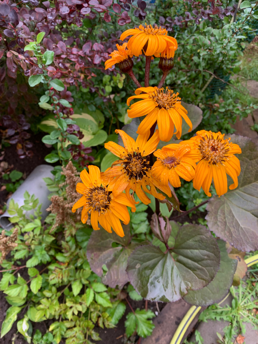 Бузульник или лигулярия - эффектный многолетник. Прекрасно подходит для садов природного стиля, садов в стиле кантри, а также очень гармоничен в составе миксбордеров, при посадке у водоемов. Корешок этого растения я посадила год назад осенью, на зиму прикрыла пластиковым ящиком. Так я стараюсь укрывать новые молодые посадки от налегания снега. Снег обязательно попадает сквозь отверстия в ящике, но нет большого давления, особенно когда меняется температура зимой и снег становится тяжелый как камень. За счет красивой листвы бузульник декоративен в течение всего сезона, а цветет он с конца лета и до середины октября. В моем саду БУЗУЛЬНИК начал показывать бутон в самые последние дни августа, я не сразу поняла, что это будет цветок. Круглый «капюшончик» образовался на верхушке стебля и через несколько дней показался маленький желтый цветочек. Всегда интересно наблюдать за растением , когда впервые его выращиваешь в саду. Бузульник имеет очень мощное корневище, от которого отходят м
