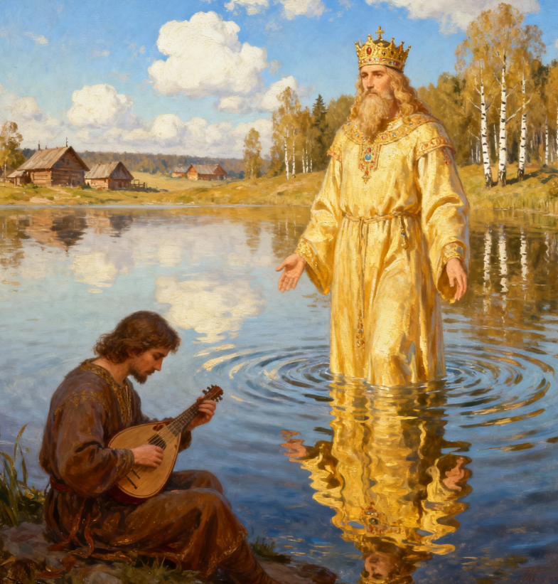 - Жанр: новгородская былина с элементами волшебной сказки.