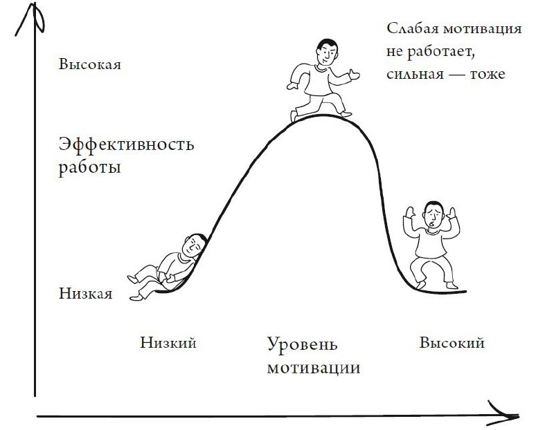 Закон Йеркса-Додсона гласит, что оптимальный уровень мотивации приводит к лучшим результатам, но слишком сильная или слишком слабая