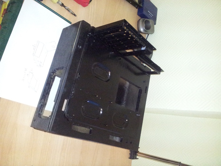 В днище необходимо сделать отверстие для забора воздуха вентилятором блока питания.