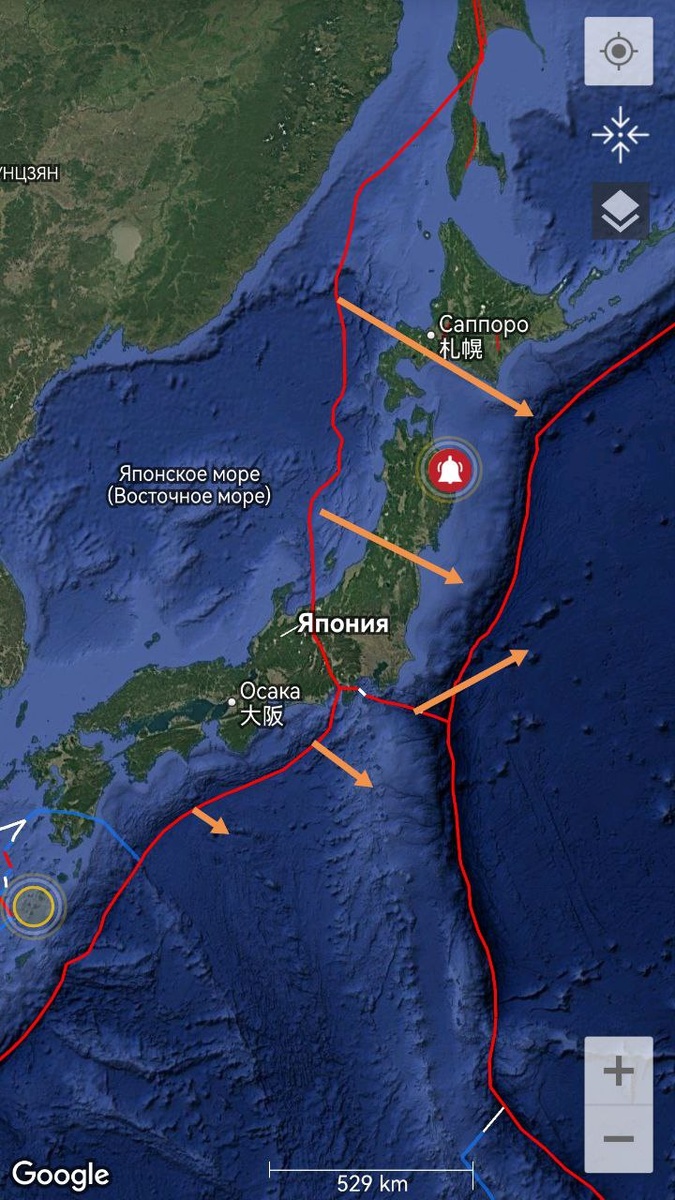 Очень неявно трассируется Япония со смещением облачных проекций на северо-восток