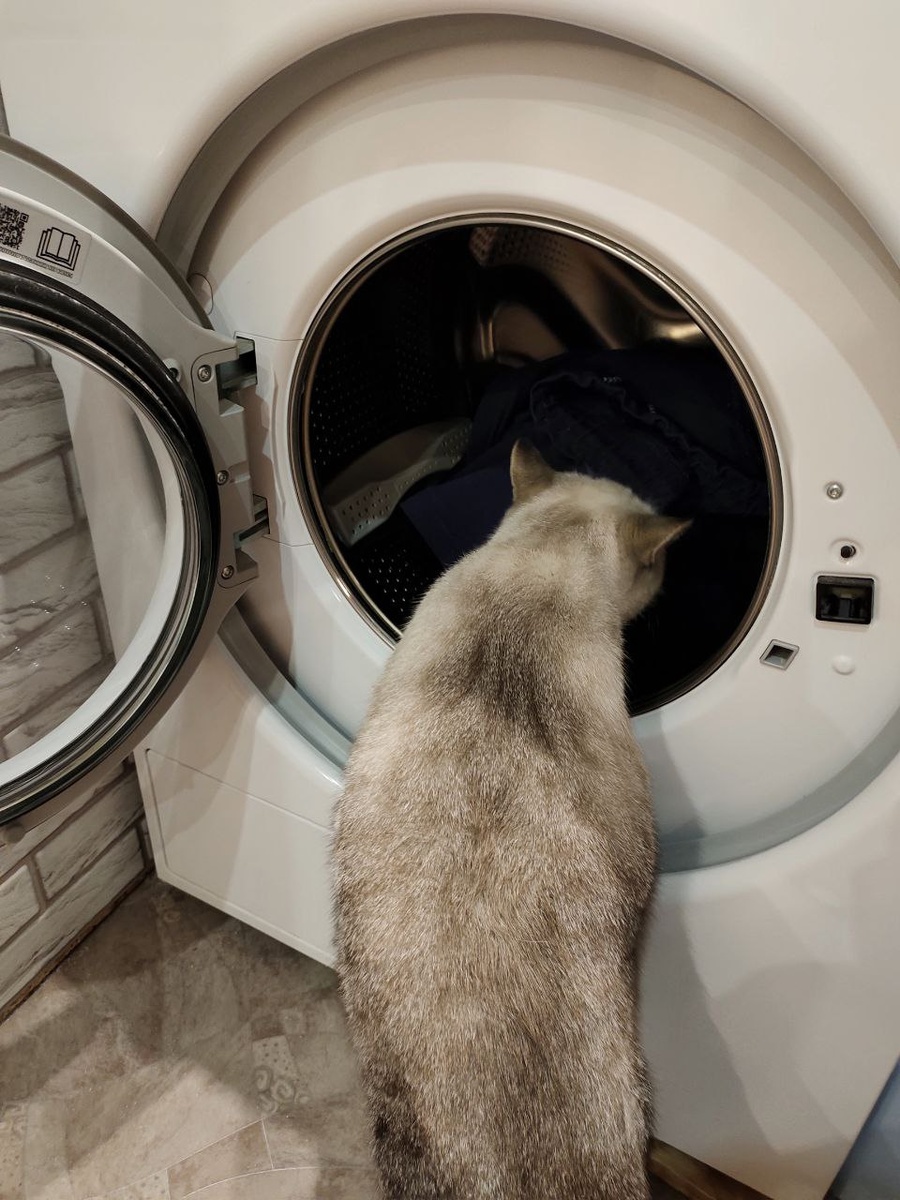 Теперь ставим стирку... Кошка вся в делах с утра