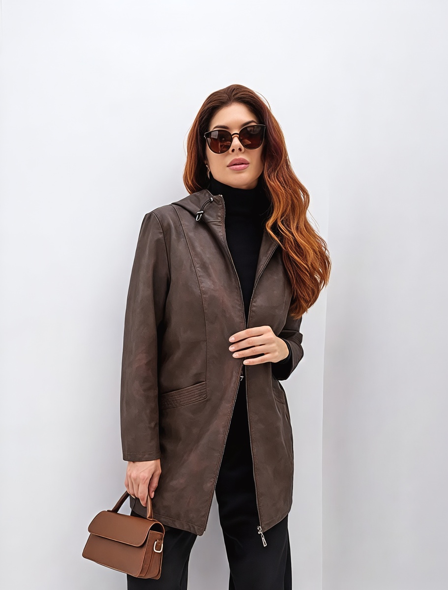 Забудьте про черную кожаную куртку. В 2025 году ее заменил насыщенный шоколадный оттенок, который мгновенно освежает лицо и делает весь образ благороднее. Этот цвет относится к семейству Mocha Mousse — главного оттенка года по версии института Pantone.