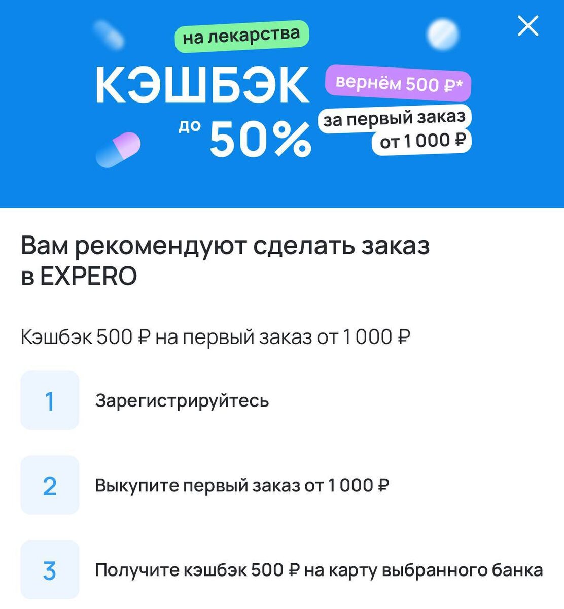 Доброе утро😌 Кэшбэк 5️⃣0️⃣0️⃣на лекарства 💊 за первый заказ от 1000₽! Акция действует по 28 сентября. Как получить: ✔️Зарегистрируйтесь с номером, привязанным к дебетовой карте банка, подключенному к СБП❗️ https://expero.ru/s/pDFEf ✔️Сделайте первый заказ на сумму от 1000₽ и получите его. ✔️Кэшбэк будет зачислен на дебетовую карту вашего банка в течение 14 дней после покупки. @100000pochemu #Кэшбэк #Лекарства #Акция #Скидки #Покупки #Здоровье #ДебетоваяКарта #СБП #Экономия #Промоции
